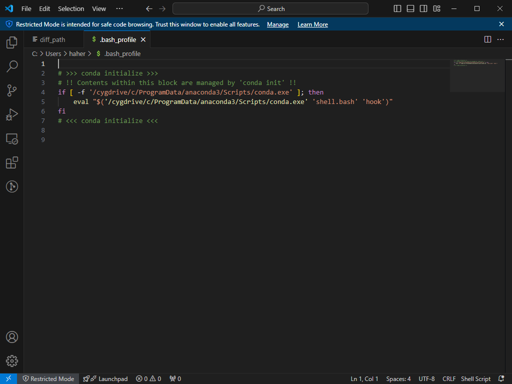 C:\> conda init bash