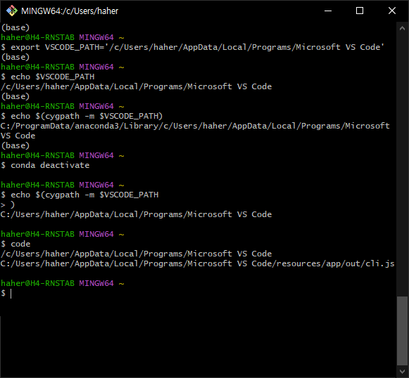 cygpath 명령이 존재하면, cygpath를 이용해서 $VSCODE_PATH를 변환하라는 말입니다.